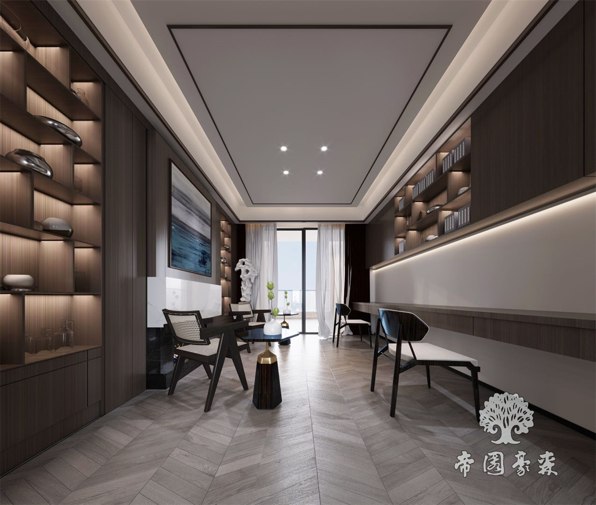 帝園豪森-全屋高定-效果圖-現(xiàn)代中式--貼皮系列