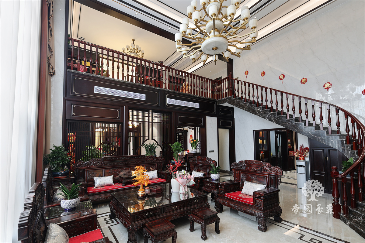 帝園豪森-常寧別墅實景案例-新中式風(fēng)格-原木定制-客戶案例 -